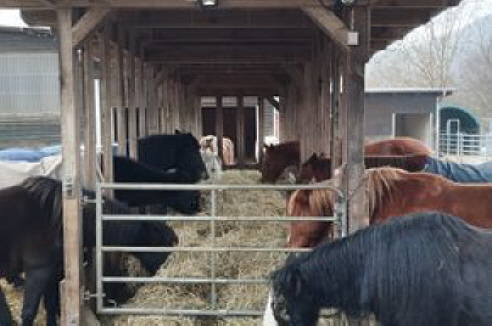 Bei uns werden alle Pferde in Offenställen untergebracht und leben in einem Herdenverband.
